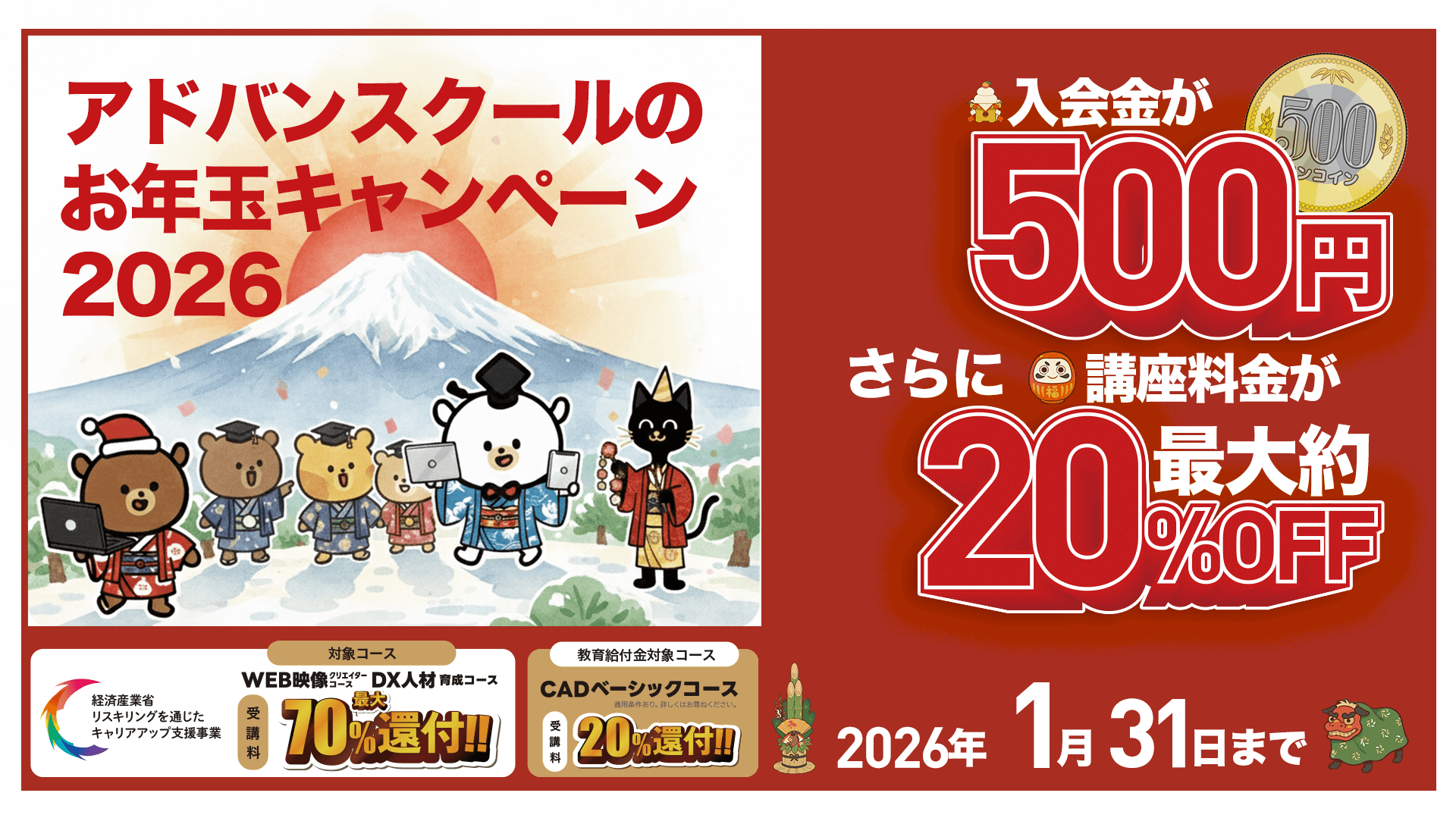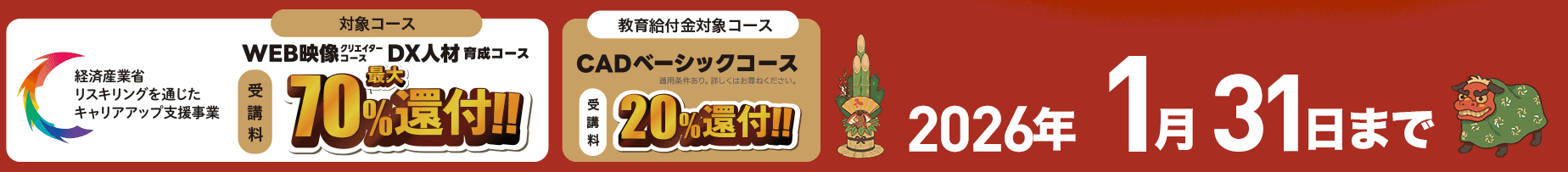 対象講座 受講料最大70%還付!