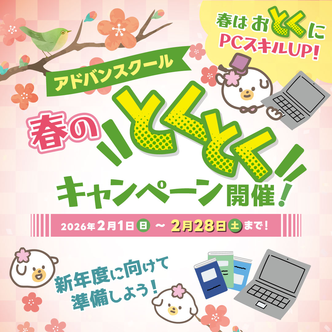 「学びたいけど費用が…」「オンラインでも本当に身につくの?」そんな不安を解消!アドバンスクールは、充実のカリキュラムと手厚いサポートを、圧倒的なコストパフォーマンスで提供します。